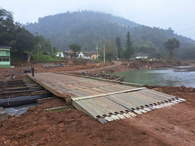 “Não temos previsão de desmontá-la. Vamos continuar operando conforme a demanda da Prefeitura de Sinimbu, que nos auxiliou muito no trabalho de preparação das margens, de forma a adequar o vão do córrego do Rio Sarandi às especificações da ponte”, destacou o Coronel Farias.