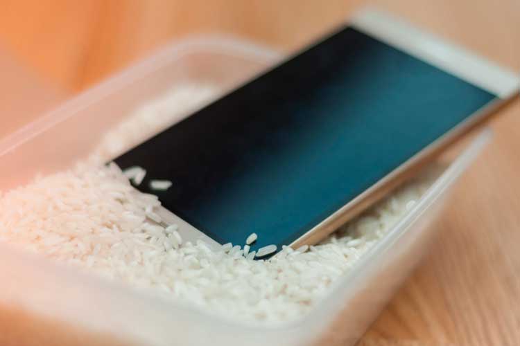 Momentos de pânico seguem a queda de um celular na água. Muitas vezes, o primeiro reflexo é correr até um pote cheio de arroz e mergulhar o aparelho no alimento cru. Infelizmente, não vai adiantar muito. O arroz tem propriedades absorventes, mas não o suficiente para secar um telefone molhado. É importante desligar o aparelho e retirar o máximo da água possível, retirando também o chip e cartão de memória. Aí, é possível apelar para o arroz (mesmo sem garantia) ou até para o secador de cabelos.