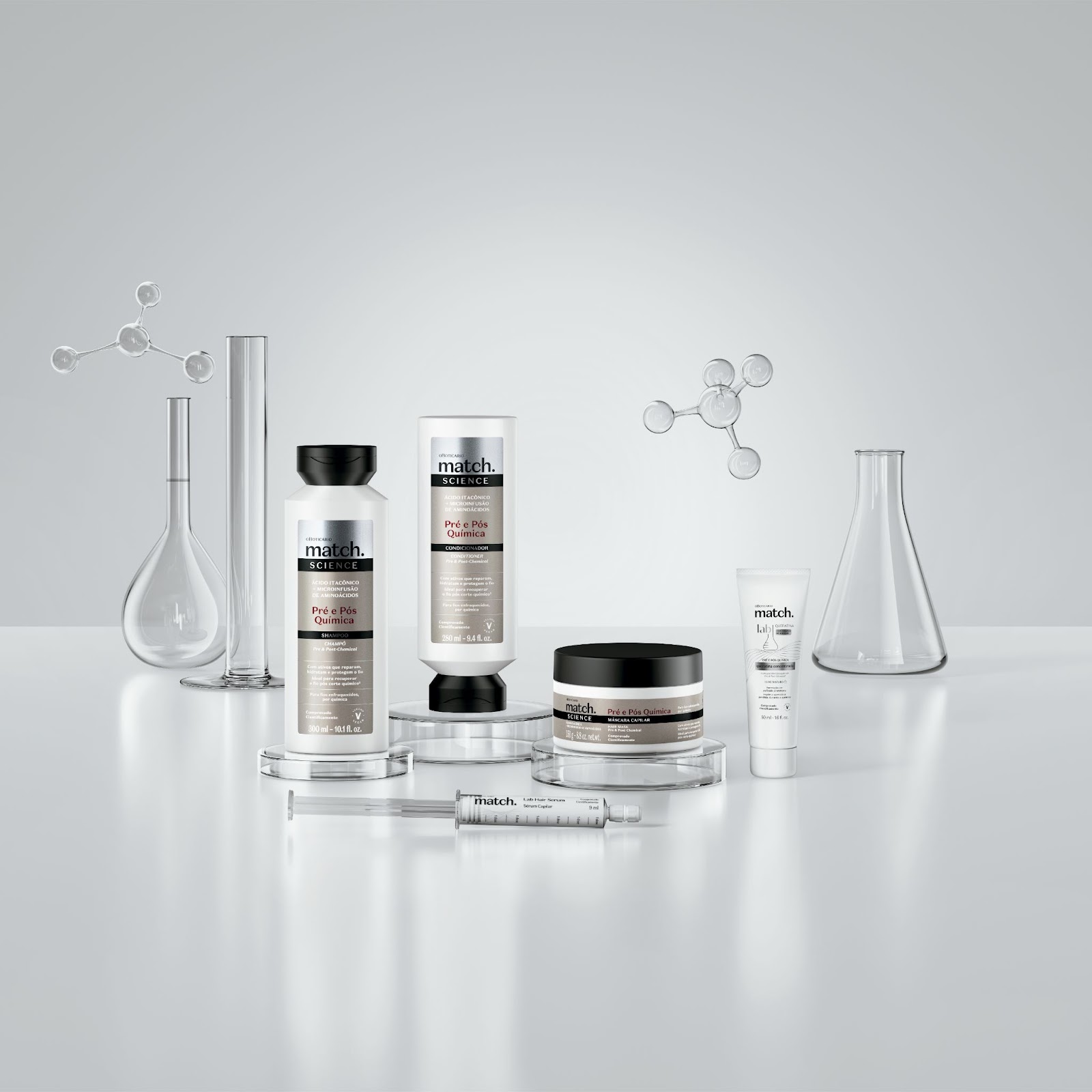 A Match Science, do Boticário, também está preocupada com os danos causados por procedimentos químicos nos cabelos. Com a nova linha Pré e Pós-Química, a ideia é prevenir a perda de nutrientes e tratar após os processos. Assim, desde a primeira aplicação, há redução na chance de corte químico, além de proporcionar fios mais fortes e sedosos.