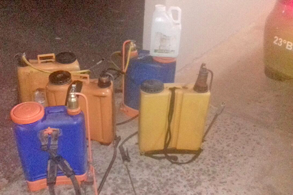 A Brigada Militar recebeu uma denúncia anônima na madrugada desta quinta-feira, por volta da 1h, informando que funcionários da prefeitura de Arroio do Tigre estariam aplicando produtos químicos na Rua Jacob Pasa, no Centro. Uma guarnição se deslocou e constatou o fato. O equipamento utilizado pelos seis funcionários – cinco pulverizadores e um reservatório – foram apreendidos.