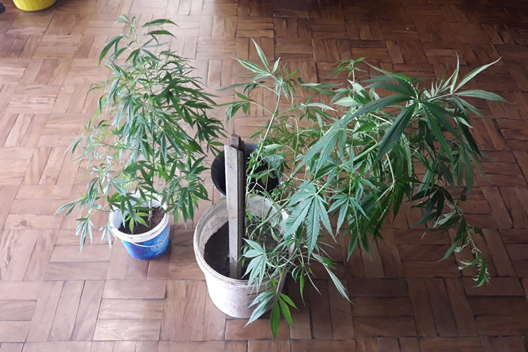 No local, os agentes encontraram dois suspeitos, já em uma residência vizinha. Com eles, foram localizadas as plantas. A mulher de 28 anos e o homem de 18 foram presos e encaminhados à delegacia de polícia, para registro. Eles vão responder por posse de entorpecentes e invasão de domicílio.