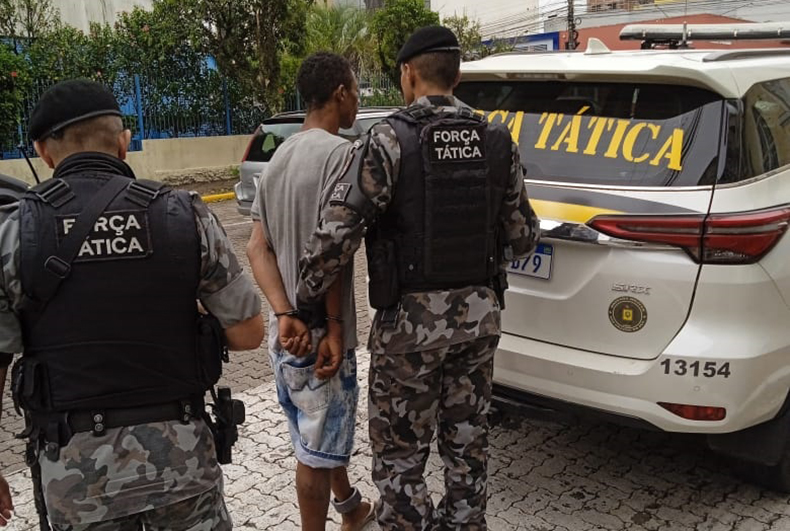 Por volta de 12h20, os policiais da divisão de elite da BM localizaram o acusado em um imóvel da Rua Cinco. Ele tem 30 anos e diversas passagens na polícia por crimes como dano ao patrimônio público, furto qualificado, roubo e tráfico de drogas. Recentemente, cumpria pena restritiva de liberdade, monitorado por tornozeleira eletrônica. No entanto, deixou a bateria do equipamento terminar, permanecendo com a tornozeleira não carregada na perna.