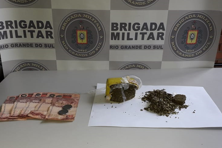 A entrada na residência foi franqueada por um jovem de 22 anos. Ao lado do sofá foi localizado o pacote que continha 150 gramas de maconha e R$ 51,00. O homem confessou aos policiais que estava vendendo entorpecente e pediu ao jovem buscar a droga que estaria no mato próximo.