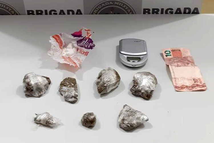 Durante ações de policiamento ostensivo, o homem foi flagrado comercializando entorpecentes a um usuário. No momento não foi possível realizar a abordagem do usuário, pois o mesmo fugiu quando avistou os policiais, dispensando um invólucro de maconha de 2,5 gramas. Já o homem que estava vendendo os entorpecentes, foi abordado e revistado. Com ele havia seis invólucros de maconha de 100,5 gramas, um invólucro de cocaína, pesando 7,7 gramas, uma balança de precisão e a quantia de R$ 10.