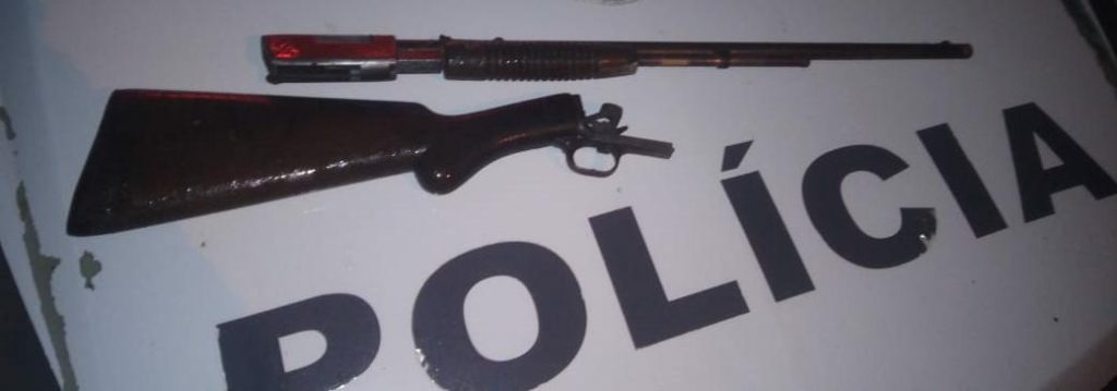 Após buscas, o suspeito foi localizado. O objeto dispensado era uma carabina calibre 12 e estava em situação de furto. Além disso, ao verificar a motocicleta, foi constatado que a mesma constava em situação irregular no sistema.