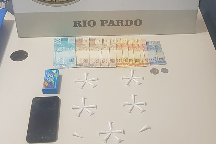Durante busca pessoal, foi encontrado com o homem 27 pinos de cocaína e R$ 415,50