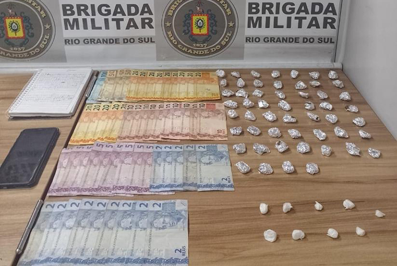 Segundo informações da Brigada Militar, os policiais visualizaram um homem parado em frente a uma residência conhecida pela tráfico de drogas. Foi flagrado um segundo indivíduo saindo da residência. Ao perceberem a fuga, os policiais realizaram a abordagem. Em revista, foram encontradas 41 porções de maconha.
