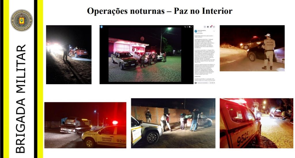 Ainda, como índice de produtividade operacional foram abordadas e identificadas 3.087 pessoas, feitas 71 barreiras policiais, fiscalizados 1.660 veículos, dos quais 112 foram removidos ao depósito do Detran por irregularidades. Também foram confeccionados 526 autos de infração de trânsito, sendo 40 destes por perturbação do sossego público produzido por som automotivo. Por fim, as guarnições da Brigada Militar registraram 29 casos de embriaguez ao volante e 76 acidentes de trânsito.