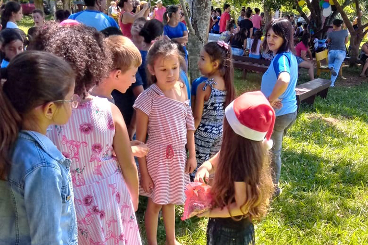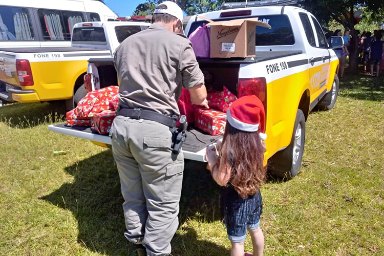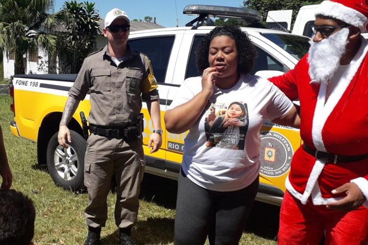 Os policiais militares da 2ª Companhia Rodoviária de Santa Cruz do Sul acompanhados dos familiares e amigos da soldado Marciele Alves, que foi morta em combate durante confronto no município de Sério no dia 25 de novembro de 2019, realizou nesta segunda-feira, 23, uma ação solidária com entrega de presentes, doces, salgados e refrigerantes para mais de 200 crianças do Bairro Mutirão do Camargo, localizado às margens da ERS-403, em Rio Pardo.