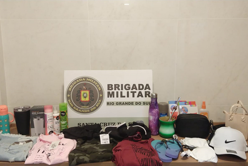 Uma mulher de 48 anos foi abordada. Ela estava junto com outra, de 26. Com as suspeitas, foi localizada grande quantidade de materiais sem procedência e objetos de vários estabelecimentos comerciais, conforme etiquetas. As vítimas compareceram à delegacia para registro policial e restituição dos produtos.