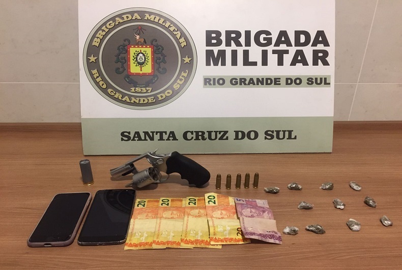 Durante a abordagem e revista veicular, foram apreendidos um revólver calibre 38, cinco munições calibre 38, uma munição calibre 12, 15,4 gramas de maconha, R$ 85,00 em espécie e dois aparelhos celulares. Diante das circunstâncias, o homem e os adolescentes foram encaminhados à Delegacia de Polícia de Pronto Atendimento de Santa Cruz do Sul para registro policial.