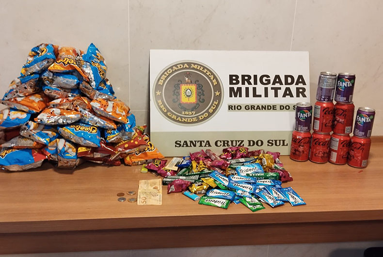 Um homem foi preso na manhã deste domingo, 21, por furto a um estabelecimento no Bairro Goiás, em Santa Cruz do Sul. Uma equipe policial foi despachada para verificar um disparo de alarme em um estabelecimento comercial na localidade. Durante o deslocamento, nas proximidades do local, a Brigada visualizou e abordou um indivíduo que carregava sacolas contendo refrigerantes, salgadinhos e chicletes. O suspeito prontamente relatou que havia subtraído os itens de uma quadra de esportes próxima.