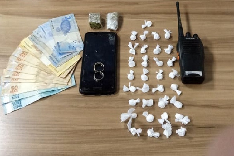 Ao tentar efetuar a abordagem, os dois fugiram para o interior da residência, dispensando material no vaso sanitário. Durante a revista dos jovens e na residência, foram encontradas 23 porções de cocaína, duas porções de maconha, R$ 550,00, um celular, um rádio comunicador e material para embalagem da droga. Os dois foram apresentados na Delegacia de Polícia de Pronto Atendimento para registro da ocorrência.