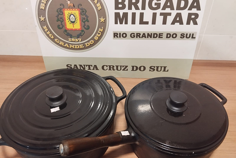 Ele foi flagrado pelos policiais no momento em que deixava o estabelecimento. O homem de 42 anos recebeu voz de prisão em flagrante. As panelas de ferro, sendo uma avaliada em R$ 365, e outra em R$ 275, foram recuperadas. O indivíduo foi conduzido até a delegacia e responderá pelo crime de furto qualificado.