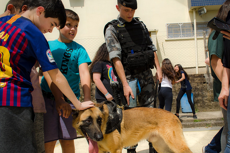 Os alunos observaram atentamente à palestra e a uma pequena demonstração do treinamento que é realizado pelos policiais diariamente. Conforme os policiais, a capacidade olfativa do cão é tão alta que ele demora cerca de 15 minutos para fazer uma varredura em um ambiente grande, enquanto um grupo de PMs demoraria cerca de uma hora.