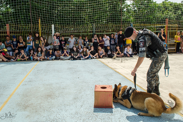 Os alunos observaram atentamente à palestra e a uma pequena demonstração do treinamento que é realizado pelos policiais diariamente. Conforme os policiais, a capacidade olfativa do cão é tão alta que ele demora cerca de 15 minutos para fazer uma varredura em um ambiente grande, enquanto um grupo de PMs demoraria cerca de uma hora.