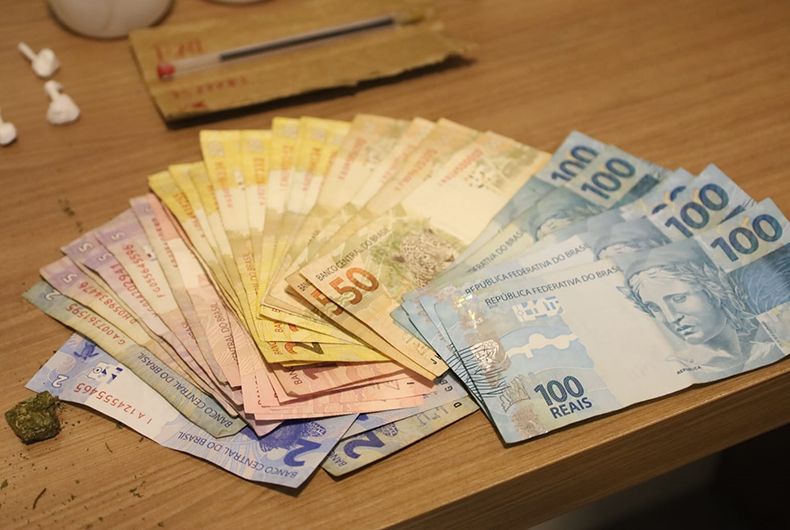Os policiais militares estimam que esse valor tenha sido arrecadado com a comercialização de drogas durante apenas as duas últimas horas antes da prisão. “Sempre tem um vendendo ali naquela esquina. Quando ele viu nossa chegada, dispensou um pote em uma calha e ficou disfarçando. No mesmo local, estava outro pote com mais drogas, além de um radiocomunicador e o dinheiro”, disse um dos policiais da BM que atuou na ação.