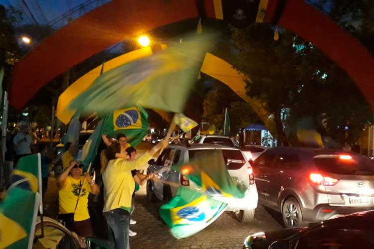 Desde por volta das 18 horas apoiadores de Bolsonaro fazem muita festa na Rua Marechal Floriano, em frente à Praça da Bandeira. Às 19h01, quando a Justiça Eleitoral deu a primeira parcial da eleição presidencial, moradores comemoraram soltando fogos de artifício na zona central de Santa Cruz.