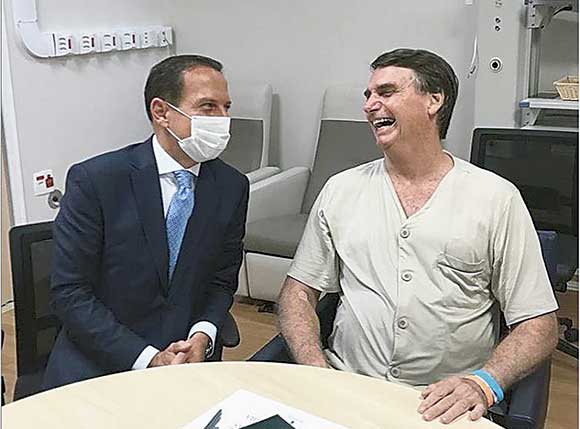 Duas semanas após uma cirurgia para retirada da bolsa de colostomia, o presidente Jair Bolsonaro recebeu nessa segunda-feira, 11, a visita de três ministros, do governador de São Paulo, João Doria (PSDB), e do secretário estadual de Segurança Pública, João de Campos, no Hospital Albert Einstein, na capital paulista.