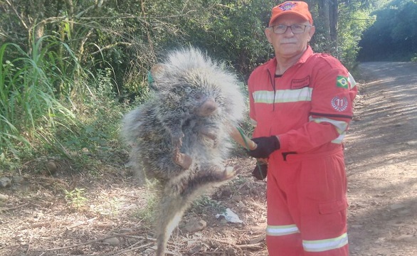 Um porco-espinho foi capturado pelos Bombeiros Voluntários, na manhã desta quarta-feira, 7, em Sobradinho. O animal foi encontrado no porão de uma residência, localizada na Rua Guaporé, no Centro de Sobradinho.