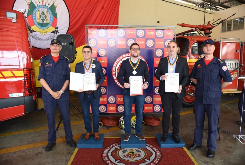 Na ocasião, também houve a entrega da Comenda do Corpo de Bombeiros Militares. Foram agraciados com a distinção a prefeita Helena Hermany; os secretários de Governança e Relações Institucionais, Everton Oltramari, e de Segurança e Mobilidade Urbana, Valmir José dos Reis; e o presidente da Câmara de Vereadores, Rodrigo Rabuske.