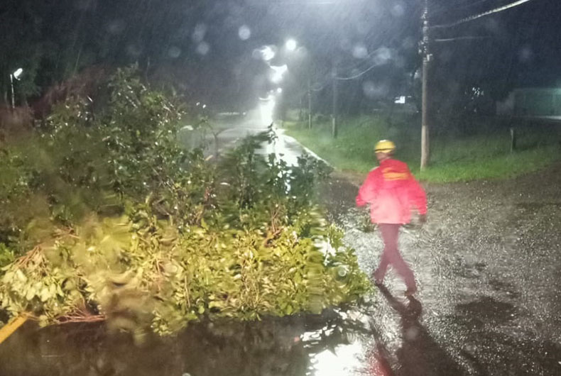 Na Capital do Chimarrão, o Corpo de Bombeiros, atuou corte de uma árvore e na desobstrução de uma via pública em Palanque, interior do município. Ao longo da madrugada, também foi feita a remoção de uma árvore, que obstruía parte da via pública no Acesso Dona Leopoldina.