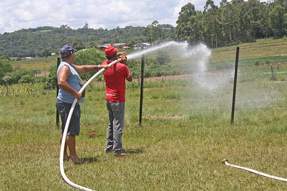A Associação Civil Corpo de Bombeiros Voluntários de Arroio do Tigre realizou, na tarde deste sábado, 13, um treinamento para a equipe no Parque de Eventos Atílio Pasa. De acordo com o presidente da corporação, José Francisco Telöken, as atividades realizadas no sábado foram básicas. “Foi o essencial. O básico do básico. Só para que os voluntários tenham noção de como é o funcionamento do caminhão, da bomba e das mangueiras”, destacou. Nove voluntários participaram da simulação sem fogo no parque. Telöken destacou que esses treinamentos serão mais frequentes, até que a equipe esteja completamente ambientada ao trabalho.