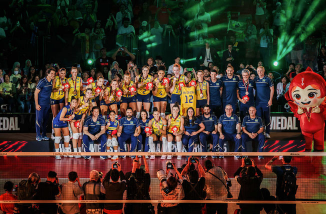 O Brasil ficou com o bronze no Mundial de vôlei feminino ao vencer o Japão neste domingo, 7, por 3 a 2, em Bangkok, na Tailândia, com parciais de 25/12, 25/17, 19/25, 27/29 e 18/16. A Itália, que havia superado a Seleção Brasileira na semifinal, venceu a Turquia na decisão e ficou com o título.