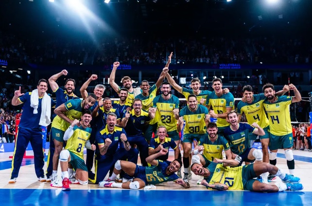 O Brasil venceu a Eslôvenia no sábado, 24, e a França no domingo, 25, ambos por 3 a 1, e fechou a semana de jogos pela Liga das Nações de vôlei masculino em Orléans, na França. Com uma campanha de seis vitórias e duas derrotas, o Brasil ocupa a terceira posição na competição.