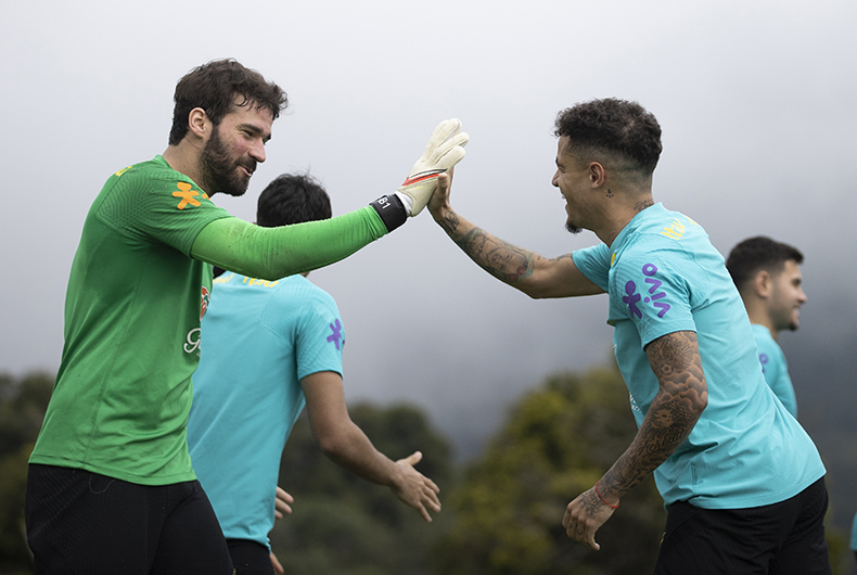 Goleiro Alisson e o atacante Philippe Coutinho estão confirmados na equipe que enfrenta os bolivianos na noite de hoje, em La Paz | Foto: Lucas Figueiredo/CBF/Divulgação/GS