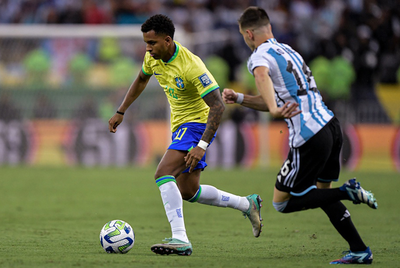 A Argentina se mostrou mais capaz de provocar desequilíbrio na defesa do Brasil nos primeiros minutos, enquanto os comandados de Fernando Diniz insistiram nos cruzamentos, que em nada assustaram Dibu Martínez. A seleção brasileira tentou pressionar a saída de bola para retomar a posse rapidamente e gerar situações de gol.
