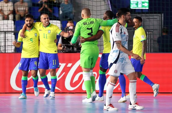 O Brasil venceu a Costa Rica por 5 a 0 nesta terça-feira, 24, em Bukhara, no Uzbequistão, e garantiu vaga nas quartas de final da Copa do Mundo de futsal. Marcel, Felipe Valério, Leandro Lino e Neguinho, duas vezes, construíram o placar.