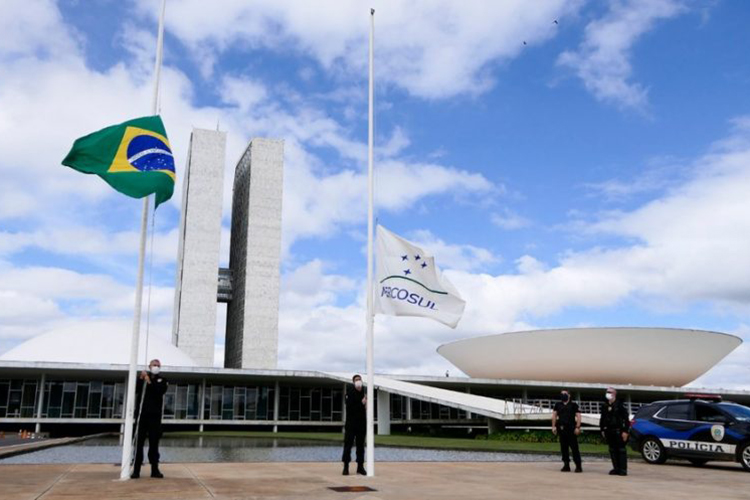 Bandeiras em frente ao Congresso foram hasteadas a meio-mastro
