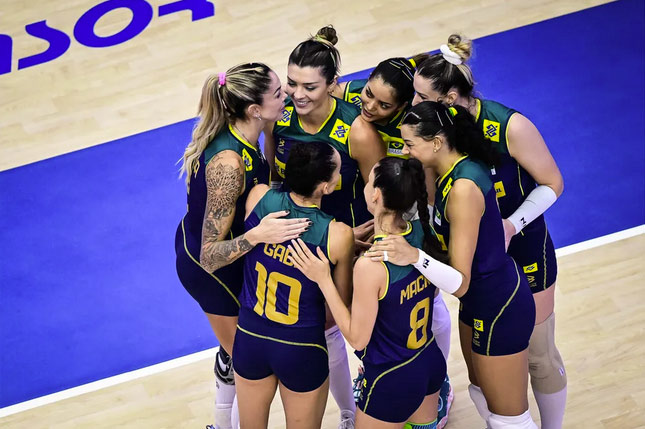 A fase eliminatória, a seleção brasileira enfrentará a China, no dia 13 de julho, em Arlington, nos Estados Unidos. A equipe chinesa terminou na quinta posição. No último confronto entre elas, o Brasil perdeu por 3 sets a 2, em um duelo muito acirrado