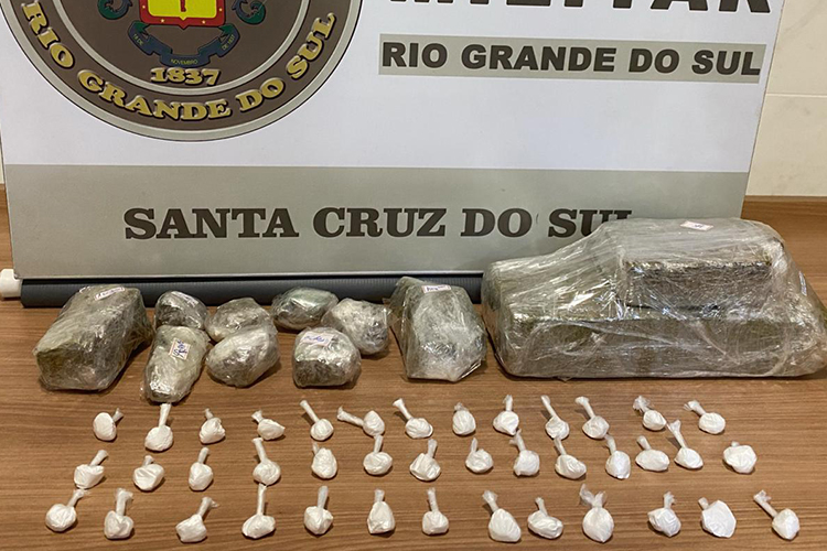 Duas pessoas foram presas e um adolescente apreendido por tráfico de drogas nesta terça-feira, 13, em Santa Cruz do Sul. Policiais militares relatam que viram um suspeito entregando uma sacola a um motorista de aplicativo, no Bairro Arroio Grande. Na sequência, abordaram o veículo e localizaram no banco traseiro uma sacola, com uma porção de um quilo de maconha.