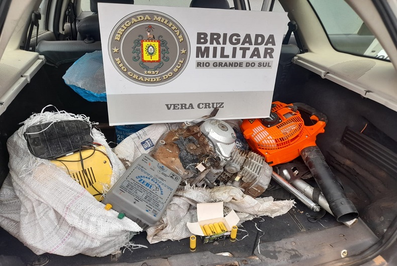 No local, dentro da propriedade da vítima, foram localizados diversos objetos, inclusive um motor pertencente a uma motocicleta que havia sido furtada no dia 13 de setembro, além de munições de calibre 20. Os objetos foram encaminhados à delegacia de Vera Cruz para registro.