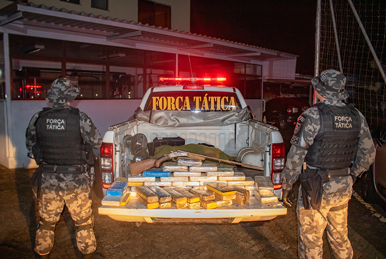 Diante disto, policiais militares da Força Tática do 23° BPM deslocaram até lá e localizaram grande quantidade de cocaína e maconha, e prenderam quatro pessoas. As drogas e os presos foram levados para exames no Hospital Santa Cruz e, em seguida, para a Delegacia da Polícia Federal.