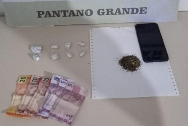 A guarnição chegou até ele a partir de uma denúncia de que o jovem estaria em associação com outro homem. Ao perceber a viatura, o adolescente tentou se esconder, mas acabou abordado e revistado. Foram encontrados R$ 65,00 em dinheiro, um celular e dois potes contendo 14 gramas de maconha.