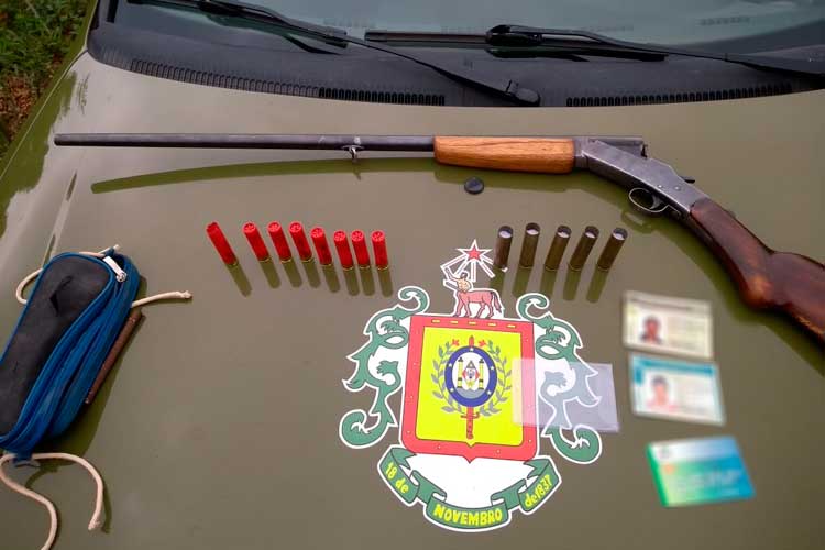 No interior de uma chácara, os PMs viram dois veículos, uma Saveiro e um Corsa. Ao perceberem a presença dos policiais, os dois caçadores fugiram pela mata. Conforme a Brigada Militar, a espingarda calibre 28 foi encontrada dentro do Corsa, juntamente com oito cartuchos calibre 32. No outro veículo, foram localizados cinco cartuchos intactos calibre 28. Ao redor dos carros havia cachorros amarrados e vísceras de animais silvestres, especificamente lebres.