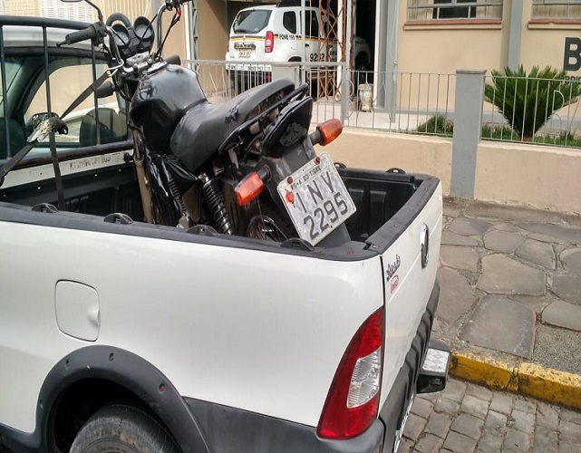 Uma motocicleta com chassi alterado e a documentação irregular desde 2015, foi apreendida pela Brigada Militar, na tarde deste domingo, 11, na Praça 3 de Dezembro em Sobradinho. O veículo foi avistado durante patrulhamento de rotina, por volta das 17h30.