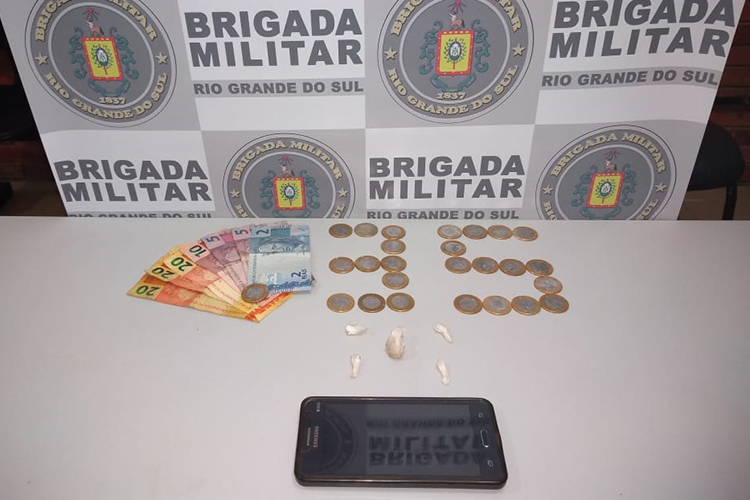 Durante a revista os brigadianos encontraram e apreenderam cinco pedras de crack, R$ 108 e um telefone celular com o homem. Ele foi preso em flagrante e encaminhado à Delegacia de Polícia.