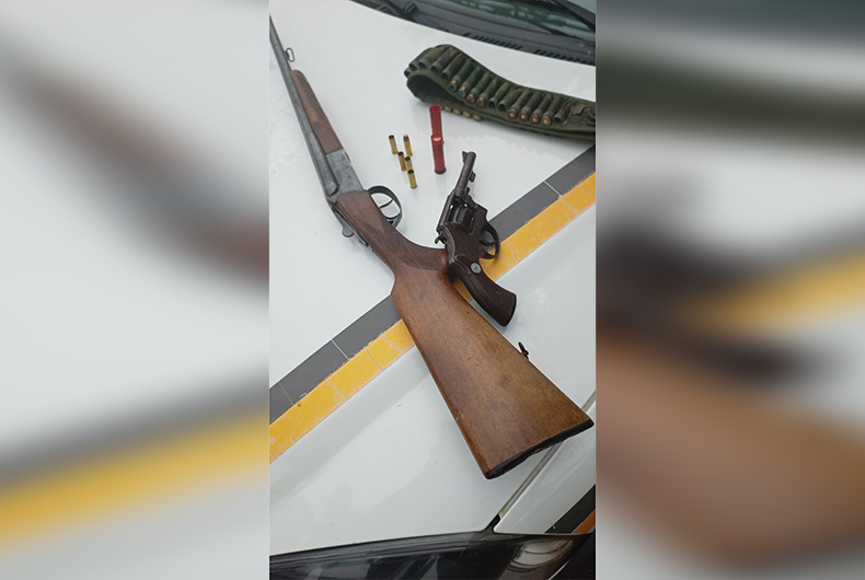 Diante das circunstâncias foi dada voz de prisão aos homens, que foram encaminhados à Delegacia de Polícia para registro do fato. O mais jovem assumiu ser proprietário do revólver e o outro ser o dono da espingarda.