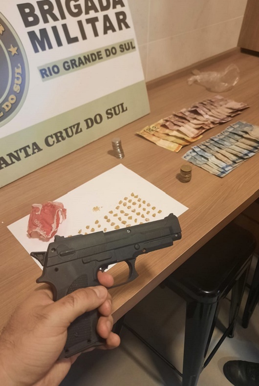 Durante a operação, um jovem de 18 anos foi preso na Rua Gustavo Doss, no Santa Vitória. Ele estava em um conhecido ponto de tráfico de drogas. Com ele, foram encontradas 63 pedras de crack e uma porção esfarelada da mesma droga, R$ 181,25 em dinheiro e um simulacro de arma de fogo (pistola de brinquedo). O jovem foi conduzido até a Delegacia de Polícia de Pronto-Atendimento (DPPA) para registro, onde foi deflagrado o auto de prisão em flagrante por tráfico de drogas, posteriormente o jovem foi conduzido ao Presídio Regional de Santa Cruz. O nome dele não foi revelado. A operação da BM segue durante a noite.