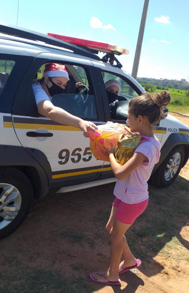 Nessa terça-feira, os policiais militares do 2° Batalhão de Polícia Militar (2°BPM) realizaram a mesma ação em Rio Pardo, nos bairros Várzea do Camargo e Mutirão do Camargo. Foram distribuídos aproximadamente 300 brinquedos e 100 kits de roupas e doces.
