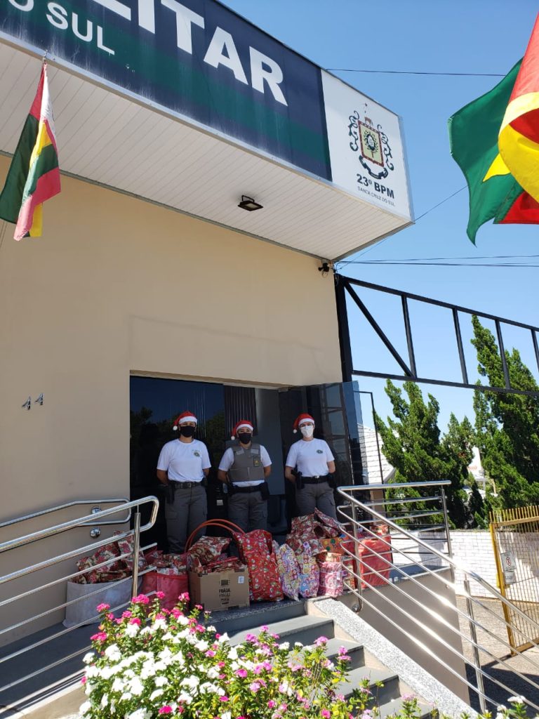 A Brigada Militar (BM) realizou ações solidários para crianças da região nesta semana. Uma delas ocorreu na manhã desta quarta-feira, 23, em Santa Cruz do Sul. Policiais do 23º Batalhão de Polícia Militar (23ºBPM ), entregaram presentes arrecadados na Campanha Natal Solidário da BM.
