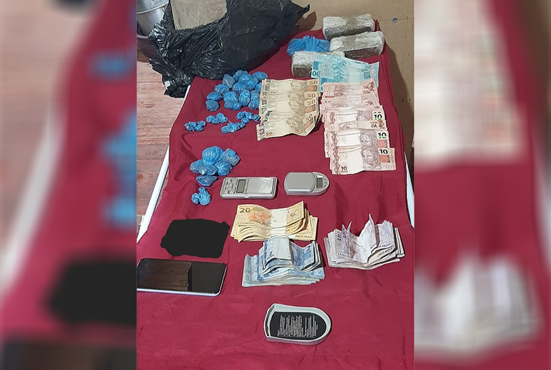 A mulher estava cumprindo prisão domiciliar por tráfico e posse de entorpecentes. O homem tinha R$ 3.441,00, duas balanças de precisão, três tijolos grandes e um médio de maconha, 42 porções prontas da mesma droga e um telefone celular. Os materiais foram apreendidos e os suspeitos encaminhados para exames e, posteriormente, à Delegacia de Polícia Civil, para registro da ocorrência.