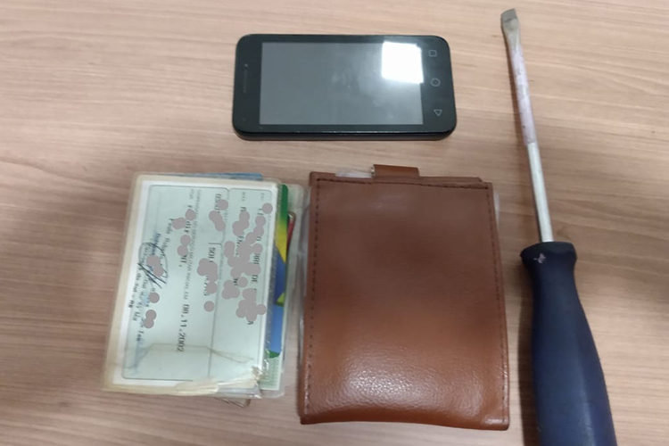 Durante buscas, os policiais localizaram o suspeito de 27 anos com as mesmas características descritas pela vítima. Durante revista, a BM encontrou com ele os objetos furtados e uma chave de fenda que foi usada para render a vítima. O homem foi preso em flagrante e encaminhado para a Delegacia de Polícia de Pronto Atendimento (DPPA).