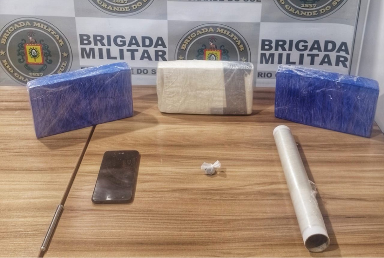 Um homem de 25 anos foi preso em flagrante em Venâncio Aires na noite dessa terça-feira, 25, por tráfico de drogas. Em uma residência, no Bairro Santa Tecla, foram encontrados três tijolos de cocaína, somando 2,9 quilos; um celular; um rolo de plástico-filme e uma porção de maconha, de um grama.