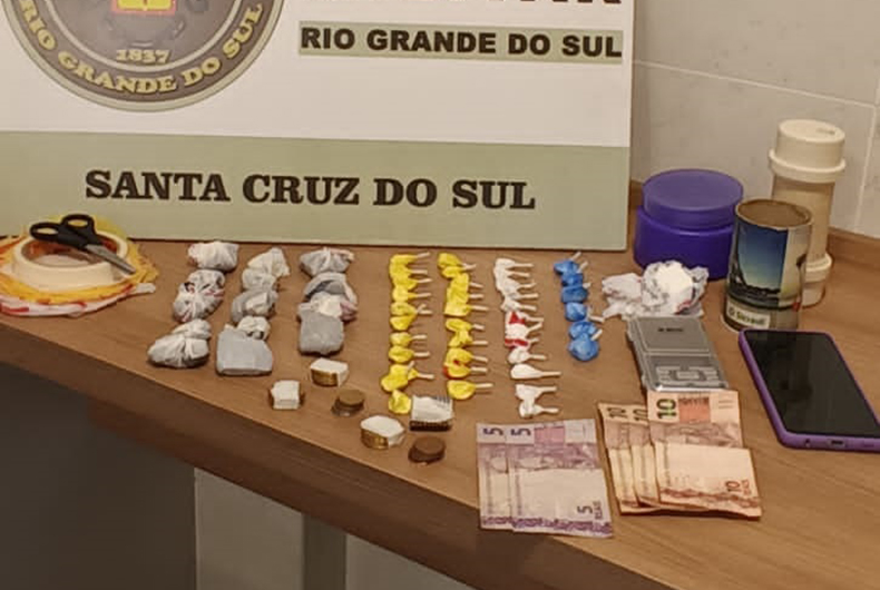 Os policiais seguiram a mulher por alguns metros e a abordaram em frente à residência dela. No local, a Brigada Militar localizou cocaína, maconha, dinheiro e materiais utilizados para embalar a droga. Diante das circunstâncias, a mulher foi encaminhada à Delegacia de Santa Cruz do Sul para a lavratura do auto de prisão em flagrante.