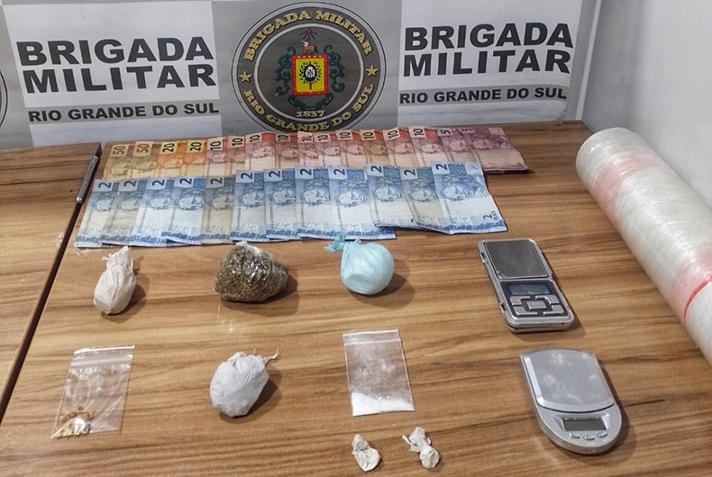 Lá, os policiais visualizaram um homem saindo da residência. Eles abordaram o suspeito e, com ele, localizaram uma porção de maconha e outra de cocaína. Ao adentrarem na casa, encontraram mais entorpecentes e outros materiais característicos do tráfico. Tudo foi apreendido.